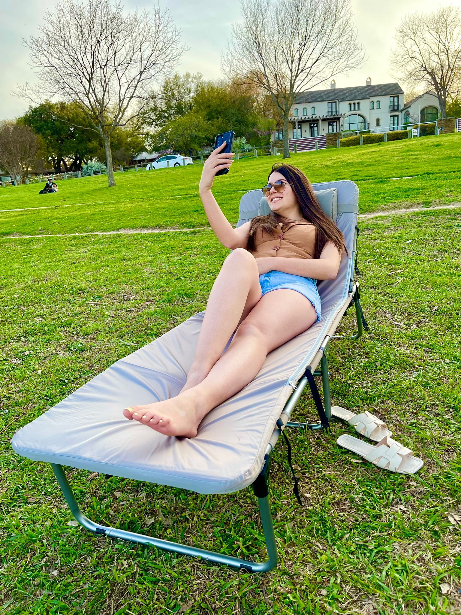 - Adjustable 5-Position, you can sit up, recline, or lay flat so you can enjoy sunbathing, tanning, reading, relaxing, or taking a nap.